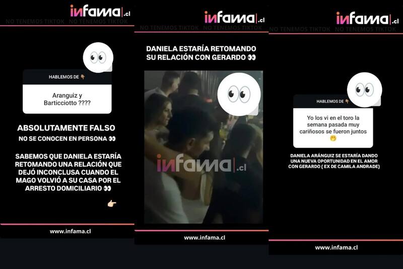 El medio citado aseguró que Daniela Aránguiz nuevamente está saliendo con Gerardo Zabala, ex pareja de Camila Andrade, con quien habría tenido un romance hace algunos meses. Al portal llegaron testimonio de seguidores que aseguran haberlos visto juntos, sin embargo la opinóloga no se ha referido al respecto.
