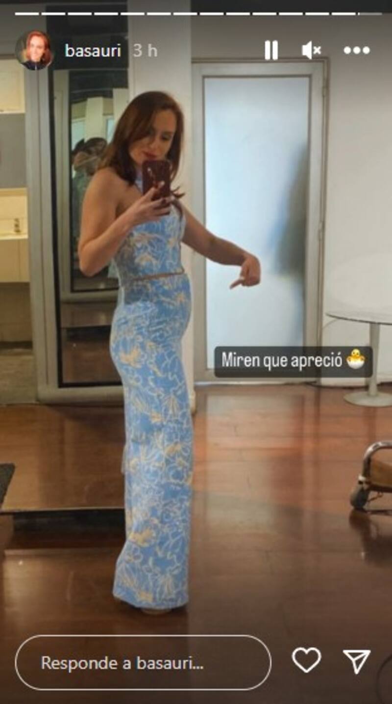 Aprovechando el momento, Basauri posó frente a un espejo luciendo una pequeña pancita de embarazo.