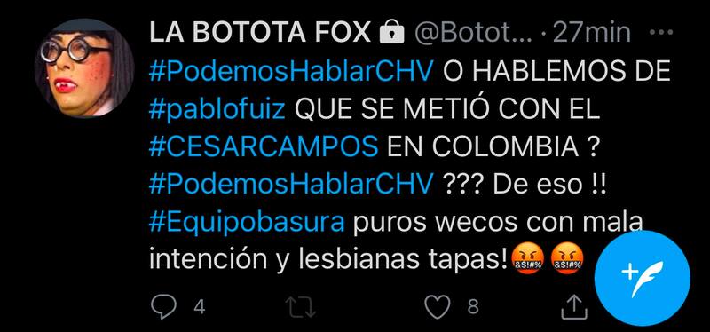 "¿Hablemos de Pablo Ruiz que se metió con el César Campos en Colombia?", escribió la conocida transformista.