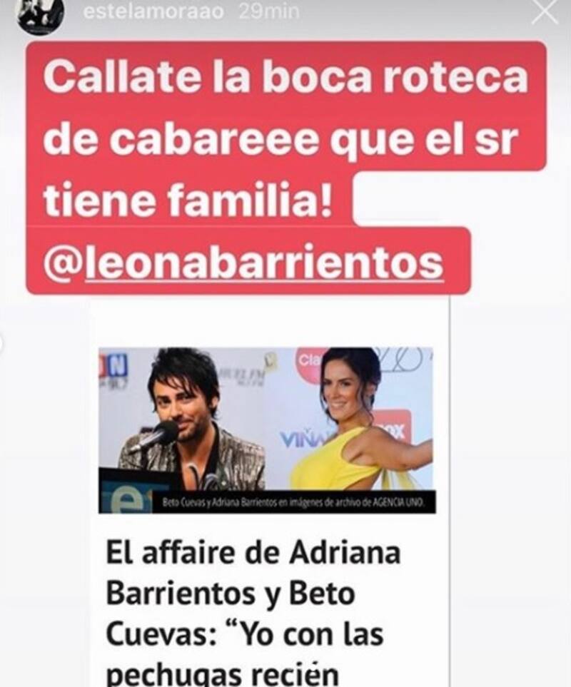 Eso sí, los mensajes no terminaron ahí, pues Estela se lanzó con todo contra la moldeo: «Cállate la boca roteca de cabareeee que el sr tiene familia! @leonabarrientos».