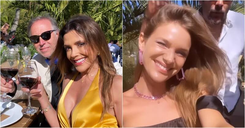 En los videos se puede ver que la ceremonia y la cena se celebró al aire libre, y para capear el intenso calor de este sábado, los asistentes llegaron con sombrillas.