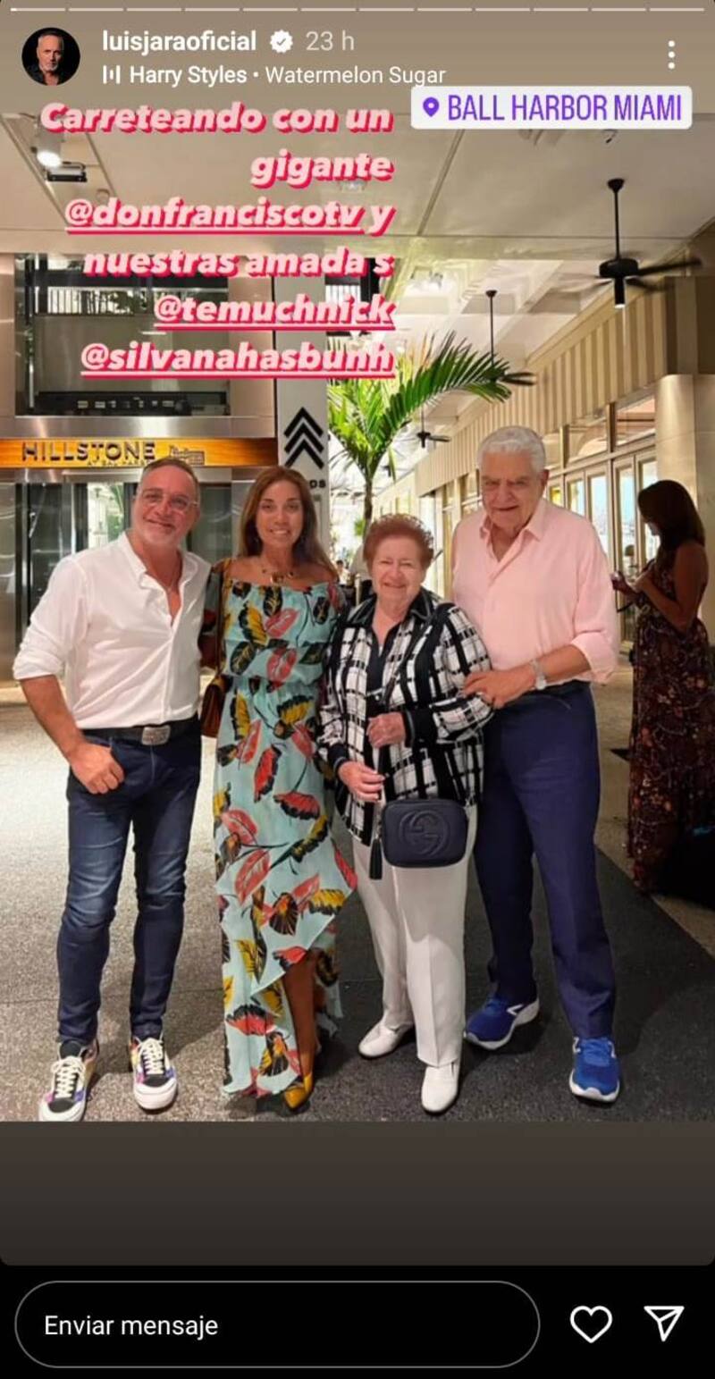 Por Camila Mendoza“Carreteando con un gigante...”: Luis Jara sorprendió tras irse de fiesta con Don Francisco en Miami