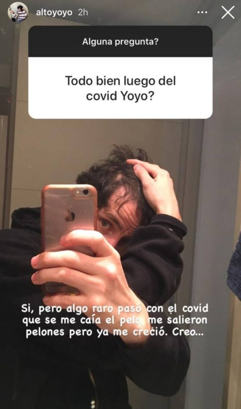 Tras ello, el artista respondió que sí, pero que "algo raro pasó con el Covid, que se me caía el pelo, me salieron pelones. Pero ya me creció. Creo…". Y acompañó sus palabras con una foto de su cabeza que ilustraba la secuela.