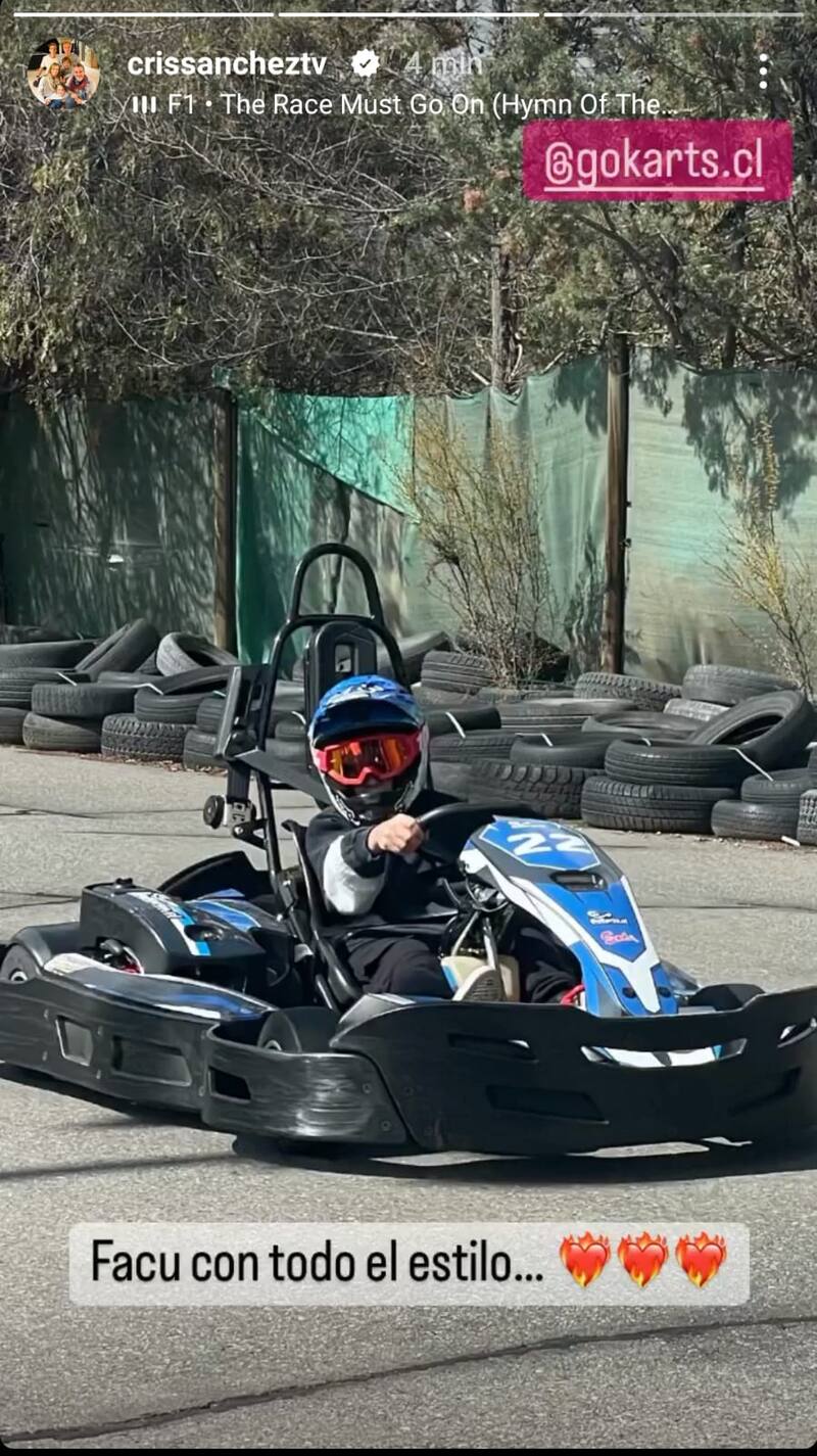 En otro registro, el ex animador de Alfombra Roja retrató a Facundo, en el pequeño auto con su vestimenta especial para la actividad y un casco.