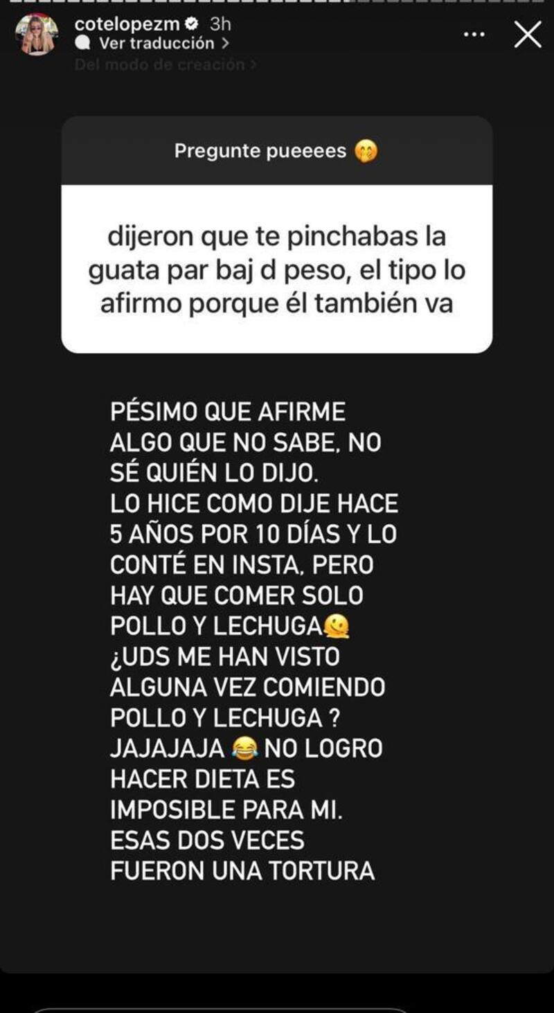 Sin embargo, el periodista lanzó un comentario que generó dudas entre los seguidores de Coté López, cuando aseguró que la empresaria se habría inyectado algo en su estómago para mantenerse delgada.