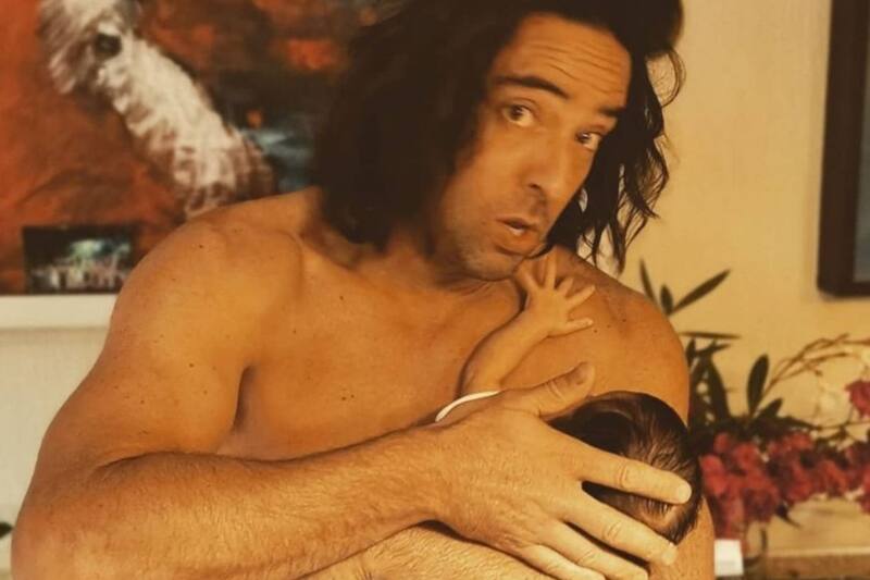 A través de una serie de historia de Instagram, Riquelme mostró cómo se encontró en serios aprietos mientras hacia dormir a la adorable criatura, que descansaba en su pecho. El actor quería ir el baño, pero no tenía opción.