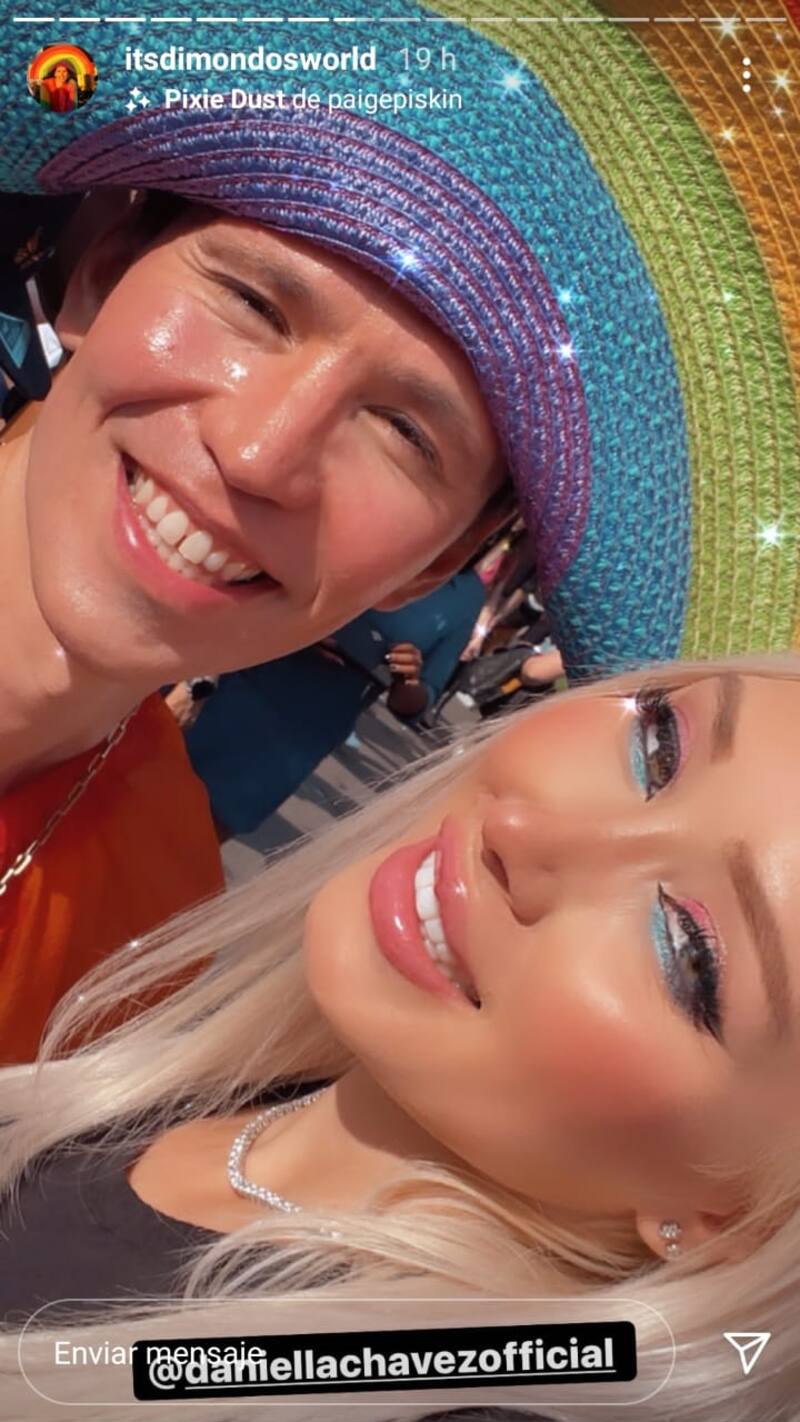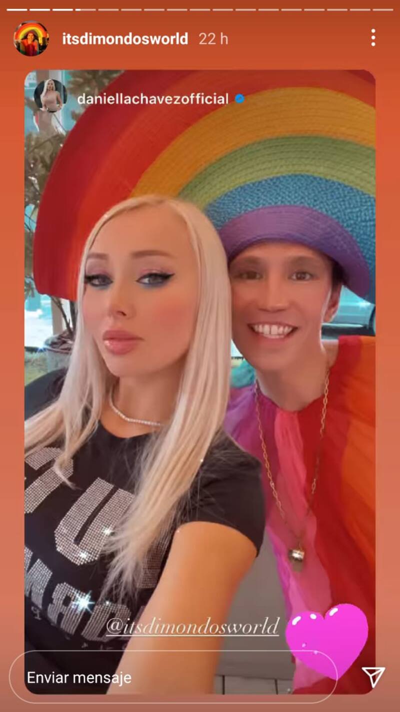 Di Mondo se lució usando una vestimenta inspirada en el arcoíris, mientras que Daniella Chávez vistió una polera con la frase "Fuck Normality", posando felices sin mascarillas y lejos de una distancia social.