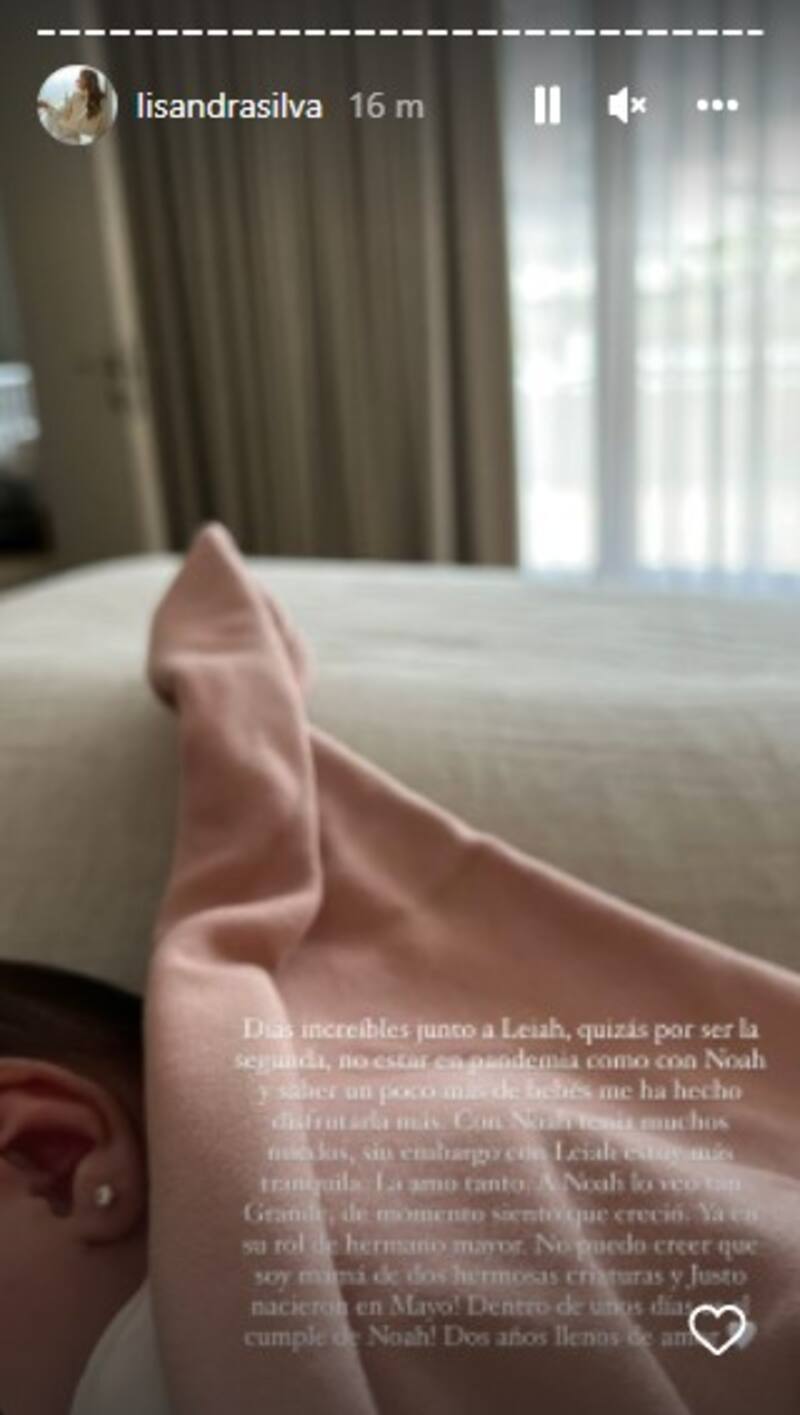 “Días increíbles junto a Leiah, quizás por ser la segunda, no estar en pandemia como con Noah y saber un poco más de bebés me ha hecho disfrutar más”, reflexionó compartiendo un registro donde se ve parte de la cabecita de la pequeña.