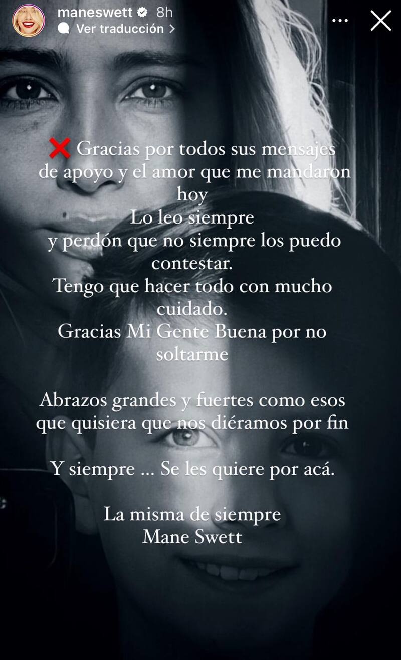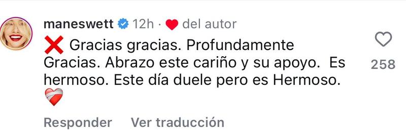 Acto seguido, Mane agradeció el conmovedor gesto. “Gracias, gracias. Profundamente gracias. Abrazo este cariño y su apoyo. Es hermoso. Este día duele, pero es hermoso”, escribió en la publicación.