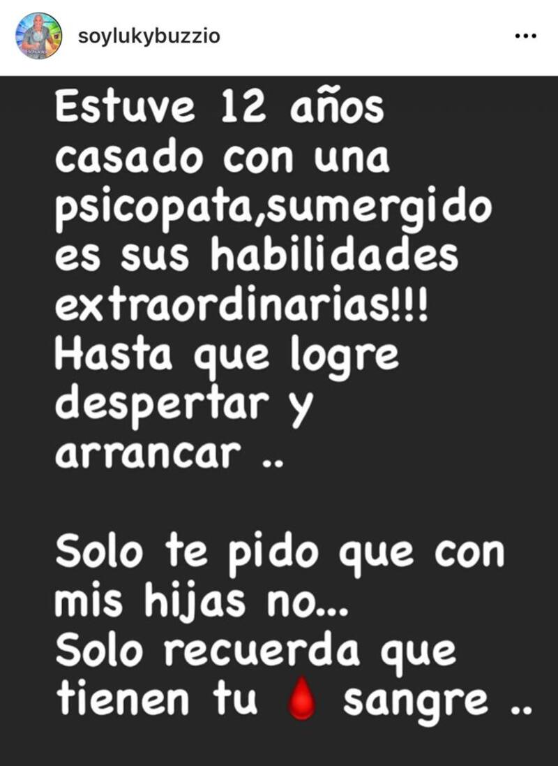La noche del miércoles, Luky Buzzio, más conocido como "Pichulotote", sorprendió a todos sus seguidores de Instagram con un enigmático y —por qué no— duro mensaje que apuntaba directamente a su exesposa.