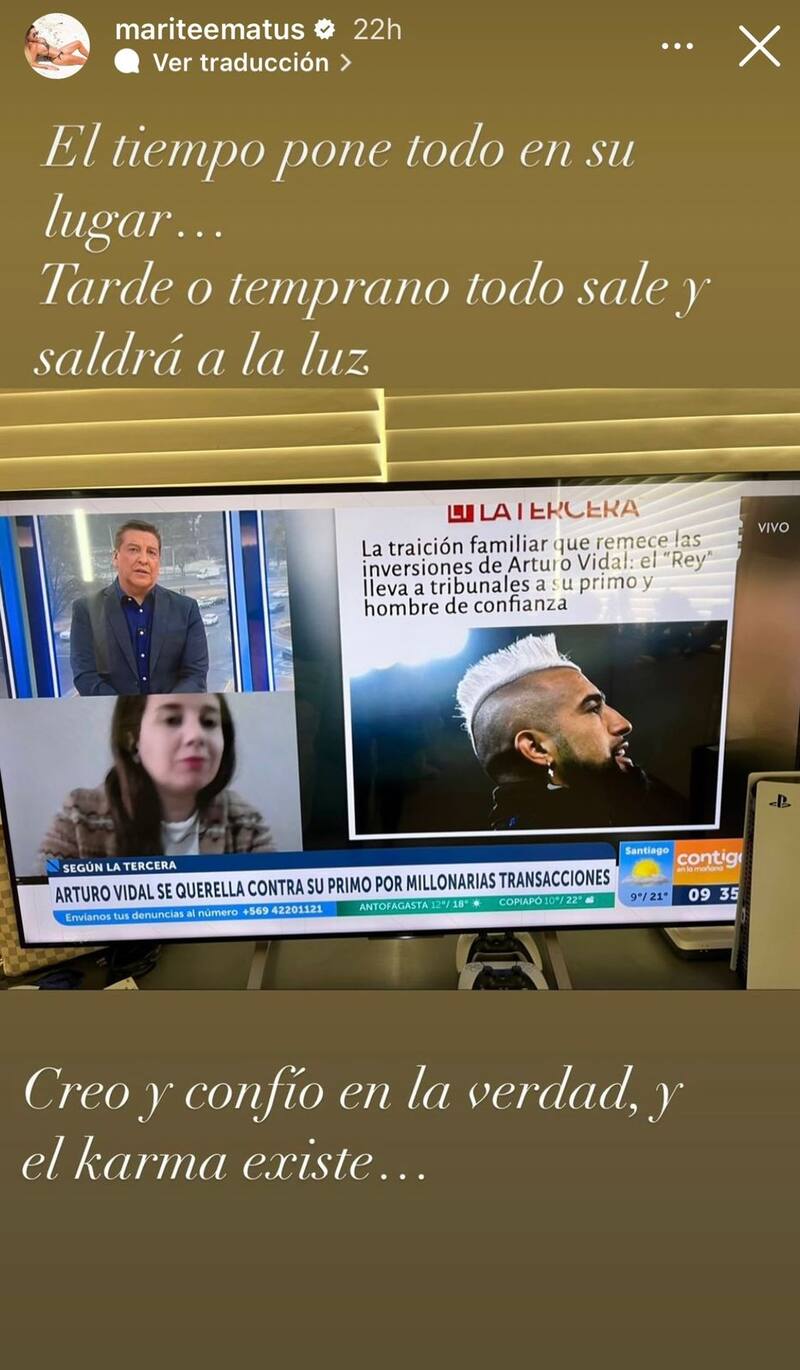 Por Juan Carlos Muñoz“El karma existe…”: el comentario de María Teresa Matus tras polémica de Arturo Vidal con su primo
