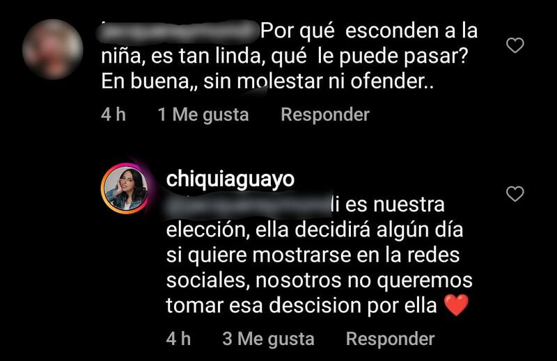 “¿Por qué esconden a la niña, es tan linda, qué le puede pasar? En buena, sin molestar ni ofender”, señaló una usuaria, mientras que Chiqui Aguayo respondió de forma directa.