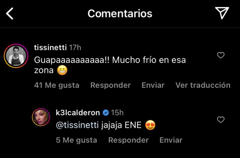 En la foto, Tissinetti le comentó a su polola: “Guapaaaaaaaaaa!! Mucho frío en esa zona”.