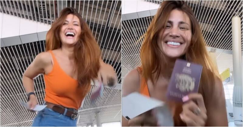 “¡Estoy en llamas!”, remarcó la cantante y conductora de tele, quien subió un video bailando, feliz, en el aeropuerto.