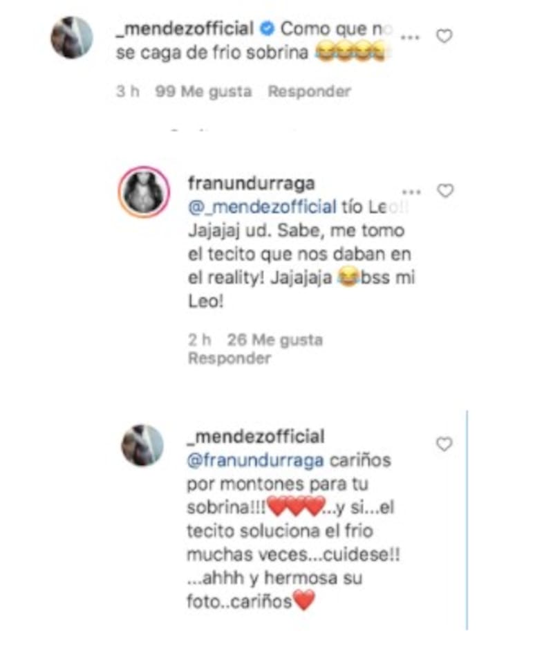 "Como que no se caga de frío sobrina", fue el comentario que le escribió Dj Méndez.