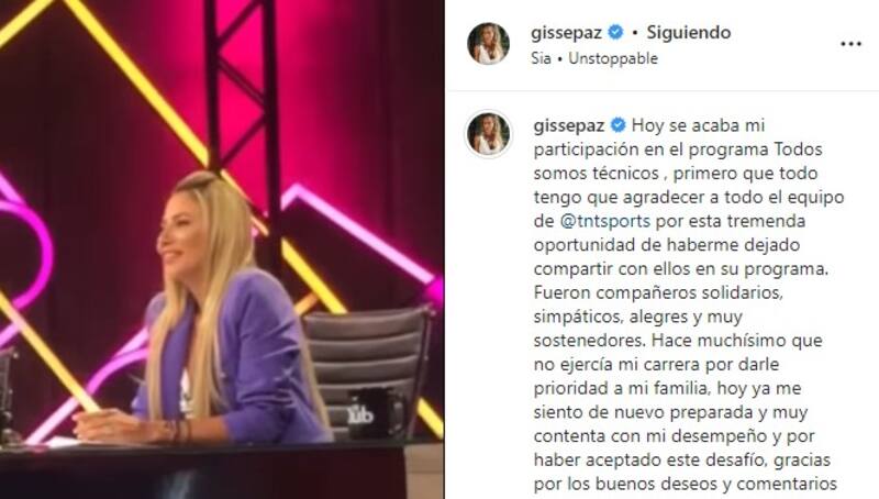La periodista Gissella Gallardo compartió su emoción en la web tras finalizar su participación en el show deportivo de TNT Sports, Todos Somos Técnicos.