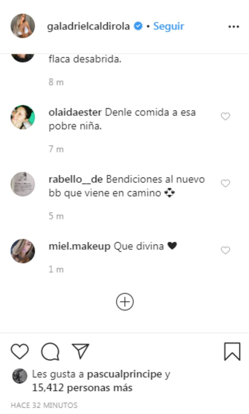 "Exageradamente delgada", "Eres muy linda gala! Pero no te hace ver bonito tu cuerpo tan delgada al extremo de que se noten tus huesitos! Por favor cuídate!", "Espero que cuando llegues a chile, te comas las cazuelas que te faltan... Con respeto!!", "Te faltan cazuelas", fueron algunos de los duros comentarios que recibió Gala.