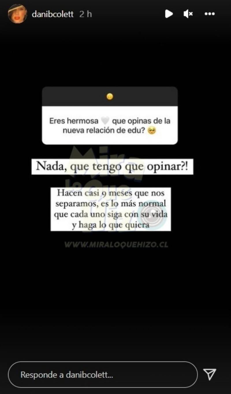“Eres hermosa”, partió el comentario, que fue acompañado con un corazón blanco. Pero enseguida, vino la pregunta: “¿qué opinas de la nueva relación de Edu?”.