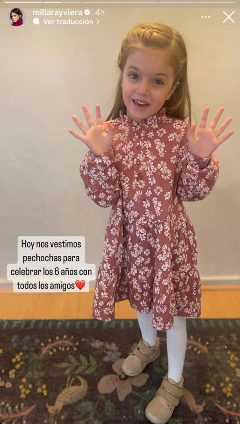 Además compartió el outfit de la pequeña, en ese día tan especial. “Hoy nos vestimos pechochas para celebrar los 6 años con los amigos”, escribió en la historia donde se ve a la pequeña esperando iniciar su cumpleaños.