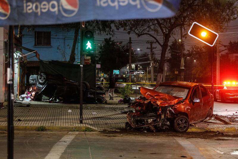 La violenta colisión se registró a las 2:20 de la madrugada de este martes en la intersección de calle Carmen con Pintor Cicarelli, en la comuna de San Joaquín. Allí, el conductor de un automóvil marca BMW se pasó a toda velocidad una luz roja e impactó por el costado a otro automóvil.