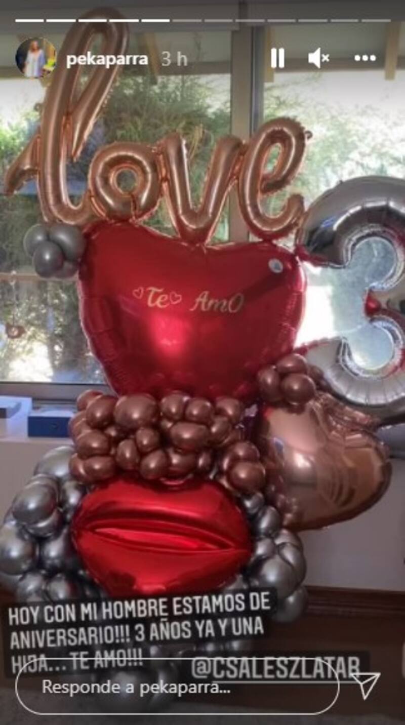 "Hoy con mi hombre estamos de aniversario. Tres años ya y una hija. Te amo", detalló Peka Parra mostrando un especial arreglo de globos con el que sorprendió a su pareja.