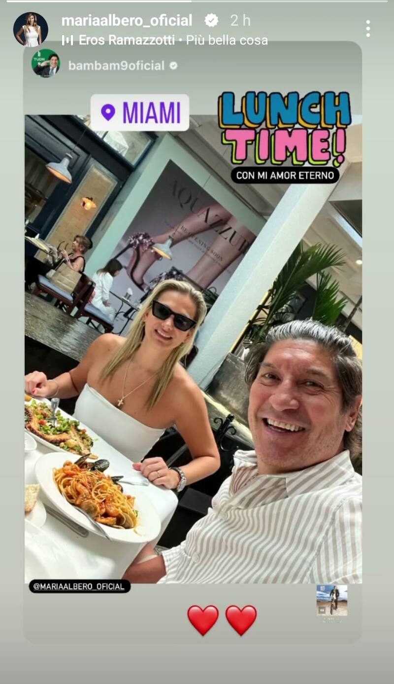 En este contexto, los enamorados disfrutaron de una romántica jornada en un lujoso restaurante de Miami.