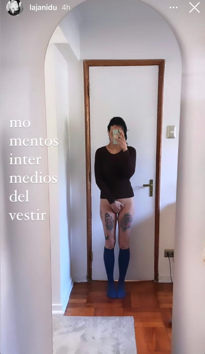 Una particular fotografía compartió este jueves en Instagram Jani Dueñas. A través del formato de historias, la comediante se lució con una postal donde aparece sin calzones.