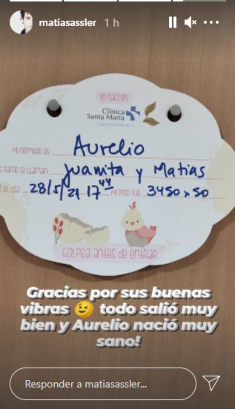 "Gracias por sus buenas vibras. Todo salió muy bien y Aurelio nació muy sano!", agregó mostrando una foto que detalla que el pequeño bebé nació el pasado lunes 28 de junio en la Clínica Alemana.