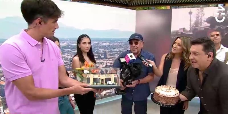 Por último, las nietas de Tito ingresaron al set de televisión par regalarle unas flores. Además, sus compañeros de pega le regalaron una simbólica cámara de prensa y un diorama del canal.