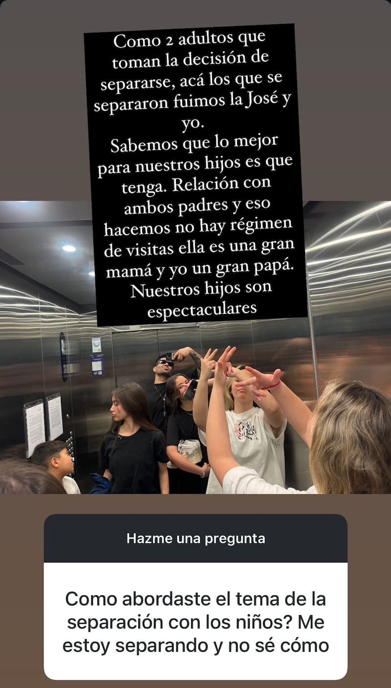 Pero eso no es todo, pues en otra de las stories de la plataforma virtual habló sobre cómo llevan adelante el cuidado de sus retoños con su ex esposa.
