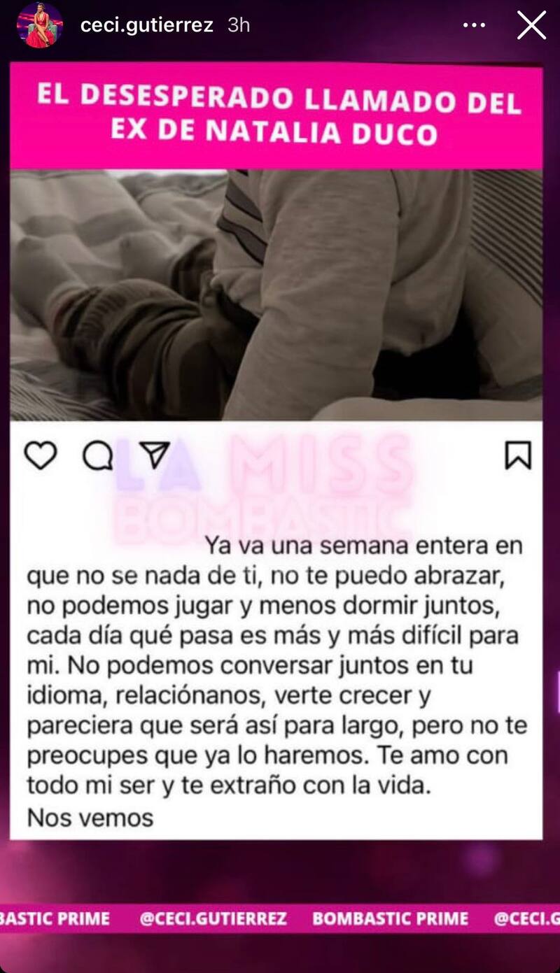 Por Juan Carlos MuñozLa grave denuncia de ex pareja de Natalia Duco: acusa que no lo dejan ver a su hijo