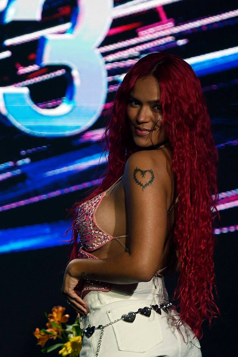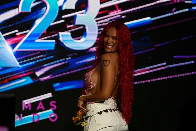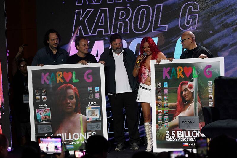 Acá, algunas de las fotos que dejó el paso de Karol G por su conferencia de prensa en Viña del Mar.