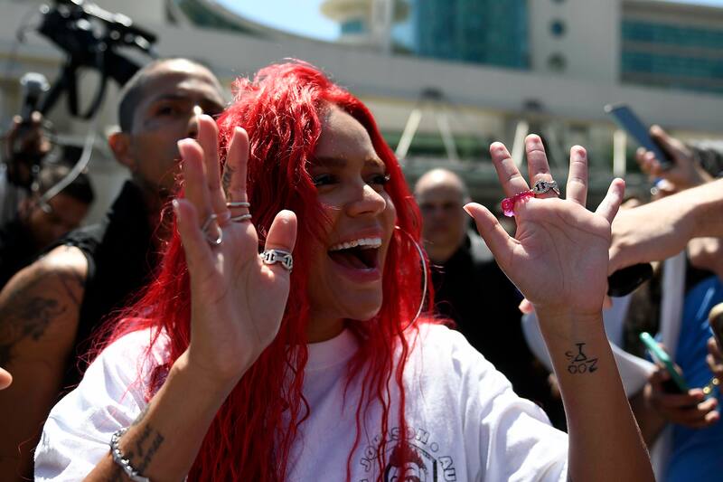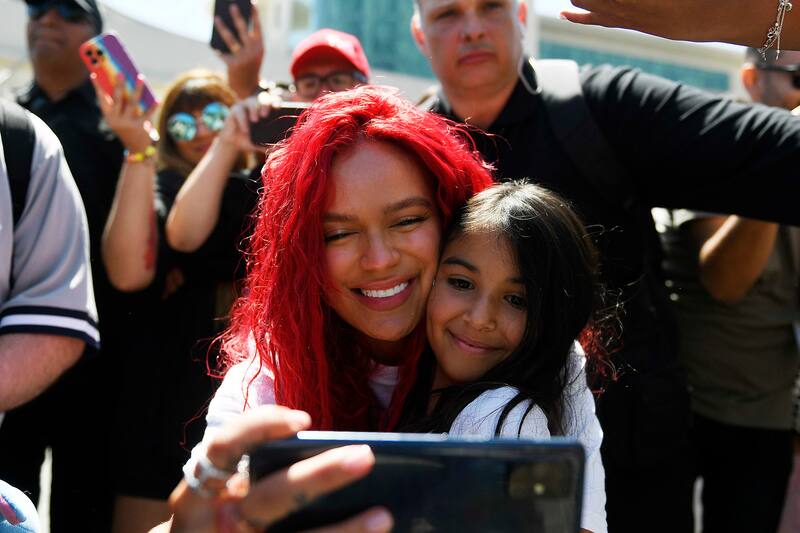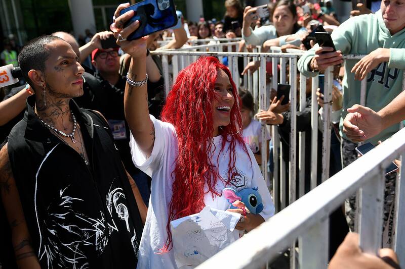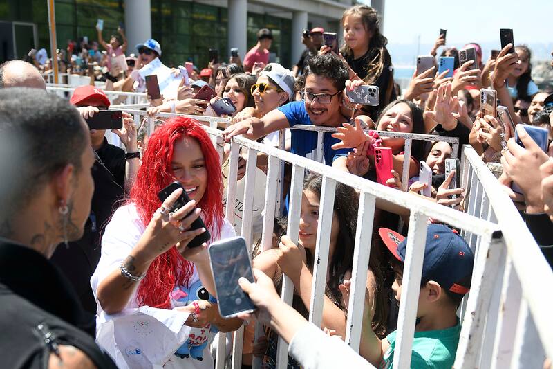 Sobre el final de su conferencia de prensa, Karol G también se dio el tiempo para ir a saludar a sus seguidores locales.