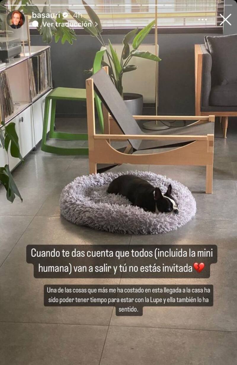 Así lo retrató en su cuenta de Instagram, donde publicó un registro de su mascota y contó su problema. “Cuando te das cuenta de que todos (incluyendo a la mini humana) van a salir y tu no estás invitada”, manifestó.