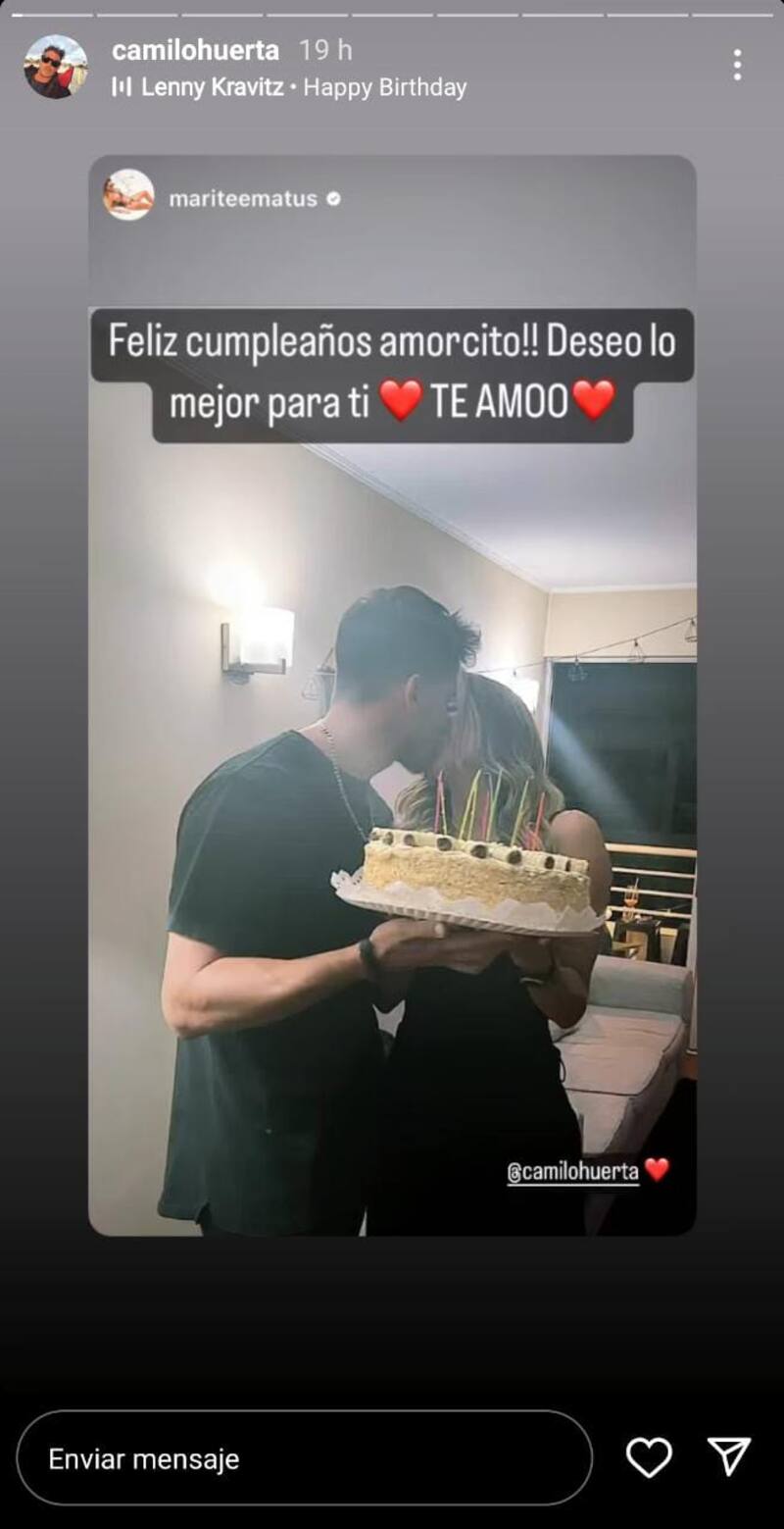 “Feliz cumpleaños amorcito!!! Deseo lo mejor para ti. TE AMO”, detalló Marité Matus en una foto donde aparece besándose junto a Camilo Huerta.
