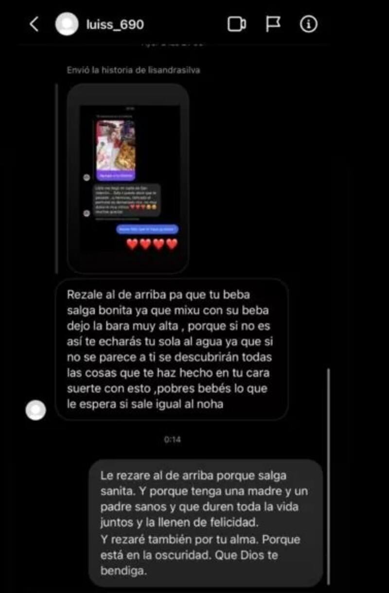 Además de eso, añadió “pobres bebés. Lo que le espera si sale igual a Noah”, recibiendo de vuelta un categórico mensaje de Lisandra.