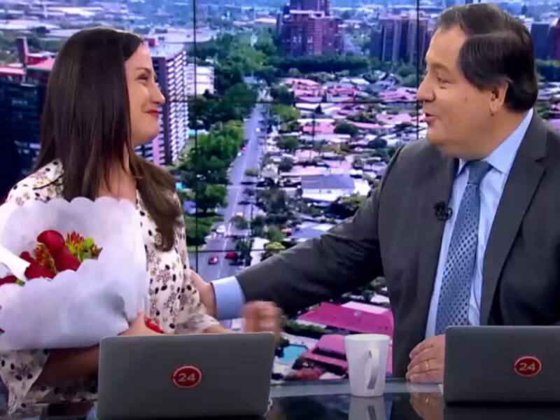 Con estas palabras, Mauricio Bustamante interrumpió el cierre normal del noticiero de la tarde de TVN para despedir a su compañera Andrea Arístegui, quien conducía a su lado. Posteriormente, le entregó un ramo de flores.