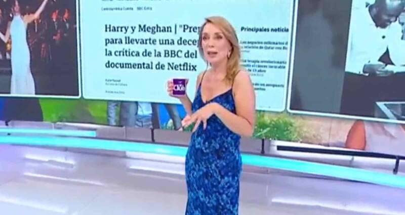 “Hola, Gonzalo, aquí estoy ultra sola”, bromeó Karen, dando inicio al programa y a un análisis la serie de Netflix “Harry & Meghan”.
