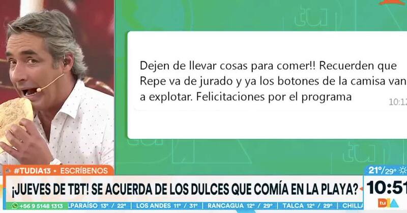 “Dejen de llevar cosas para comer. Recuerden que Repe va de jurado (al Festival de Viña del Mar) y ya los botones de la camisa van a explotar. Felicitaciones por el programa”, se podía leer en el posteo.
