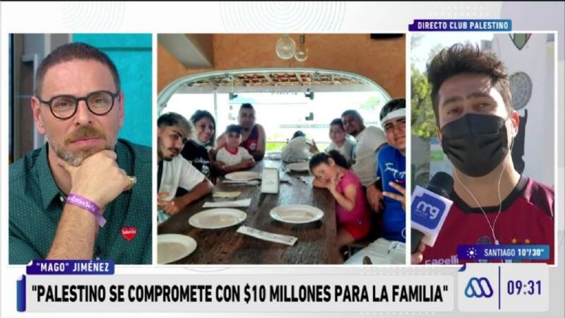 "Palestino, apenas supo de esta noticia, se puso en contacto con la familia y les manifestó su apoyo. Intentando buscar una solución para poder ayudarlo y saber que el club al que pertenece Vicente está con ellos. Además de esto, Palestino se compromete con un apoyo inicial de $10 millones", reveló Jiménez ante la sorpresa de los animadores.