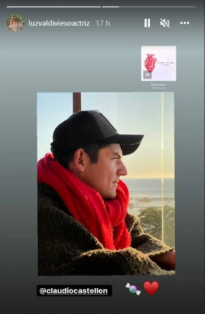 Con emojis de dulces y corazones, la actriz posteó una foto de Claudio Castellón mirando el aire libre junto a la romántica canción “Dulce amor” de Adri Stuven.