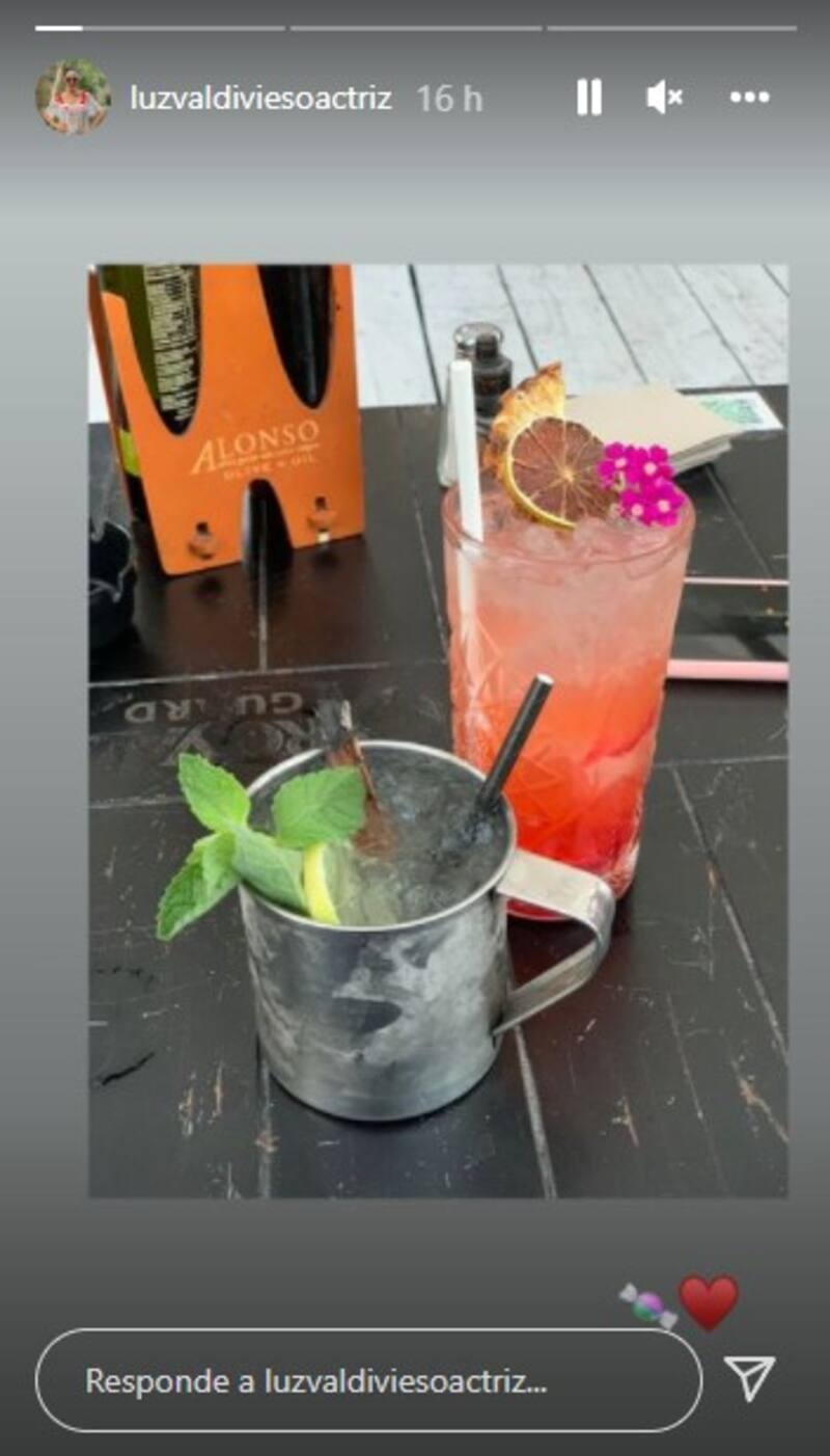 A través de su cuenta de Instagram, Valdivieso publicó una especial foto donde confirmó que puso fin a su viaje por el norte, subiendo a sus historias un registro donde aparecen dos tragos junto a emojis de dulce y corazones.