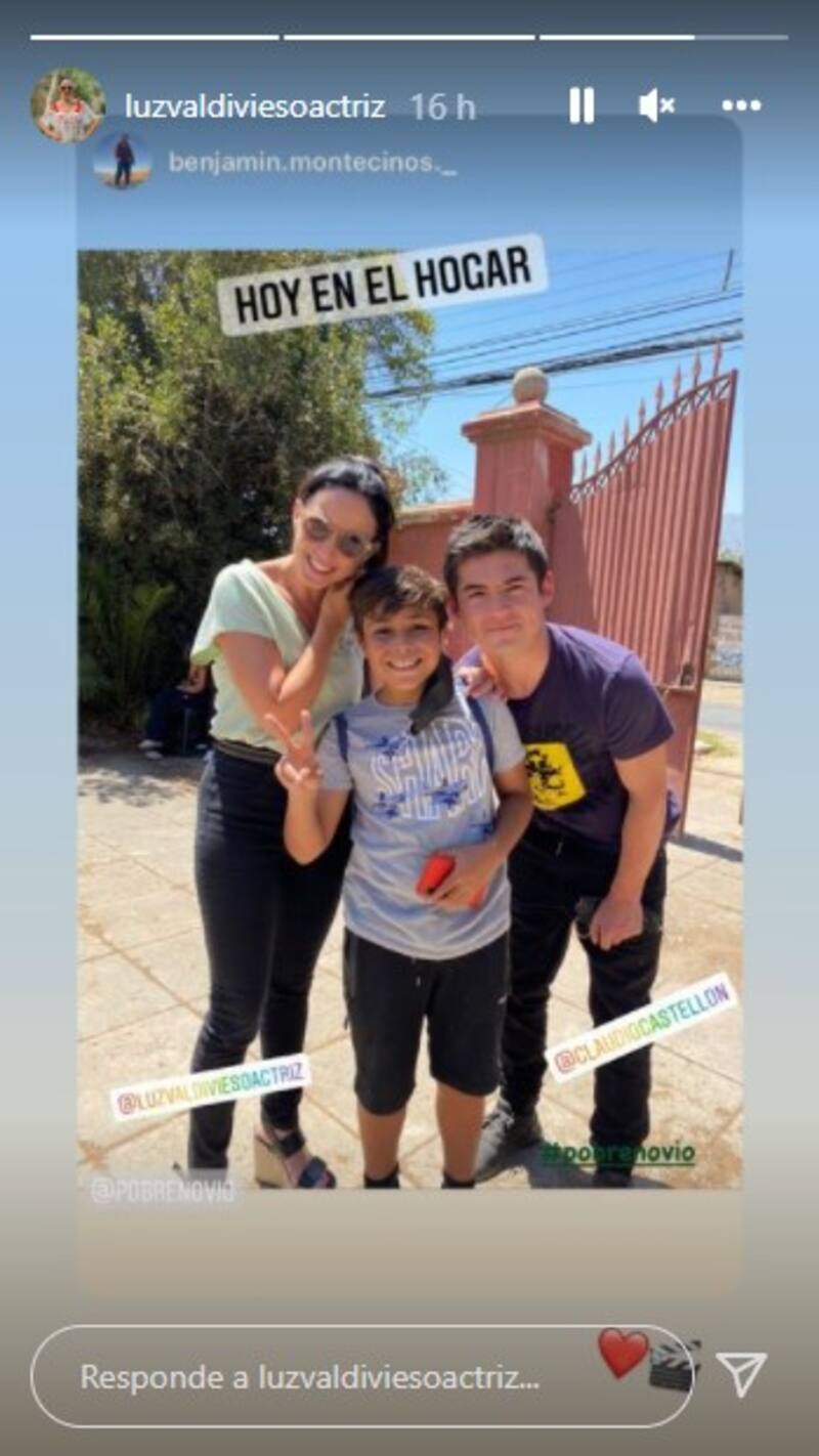 Ambos retornaron a la capital para continuar con las grabaciones de la teleserie de Mega, donde posteriormente la actriz reposteó un registro donde aparece posando junto al pequeño actor Benjamín Montecinos y Claudio Castellón, dejándose ver juntos en medio de rumores de un romance.