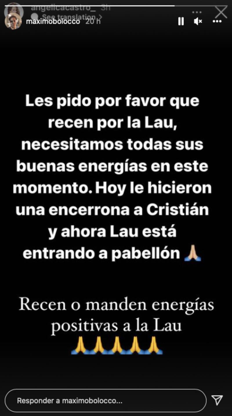 Frente a esto, el hijo de Cecilia Bolocco, Máximo Bolocco, reposteó en su cuenta de Instagram una historia que subió Angélica Castro, esposa de de la Fuente y madre de la joven, en la que informó sobre el suceso a sus seguidores de redes sociales y expresó que “necesitamos todas sus buenas energías en este momento”.