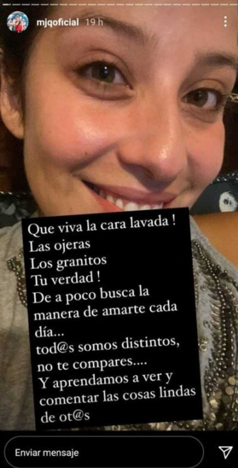 "¡Que viva la cara lavada!, las ojeras los granos ¡tú verdad!", escribió junto a dos postales que compartió en Instagram.