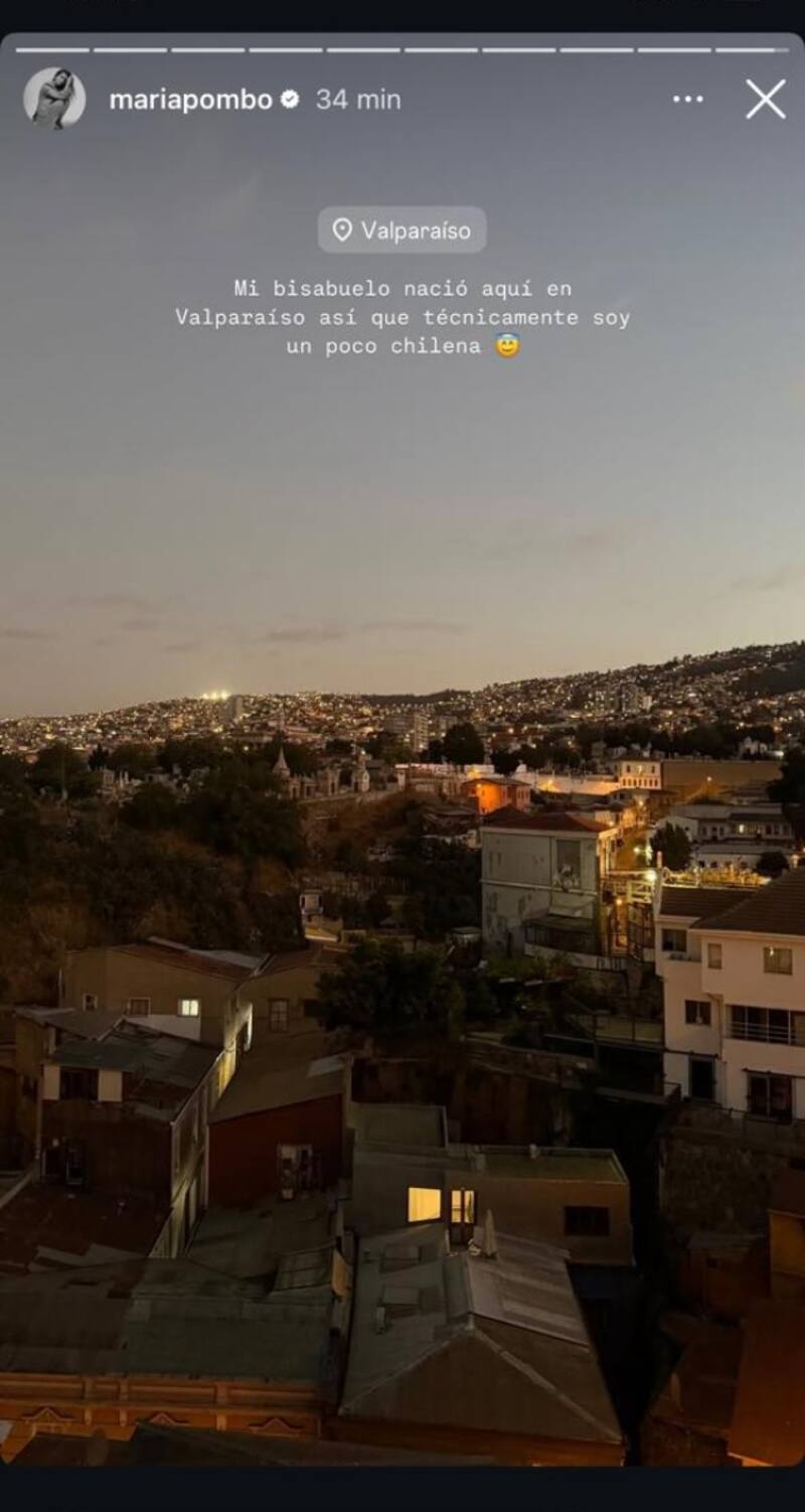 También reveló un dato interesante en una de sus historias desde Valparaíso: “Mi bisabuelo nació aquí en Valparaíso, así que técnicamente soy un poco chilena”.