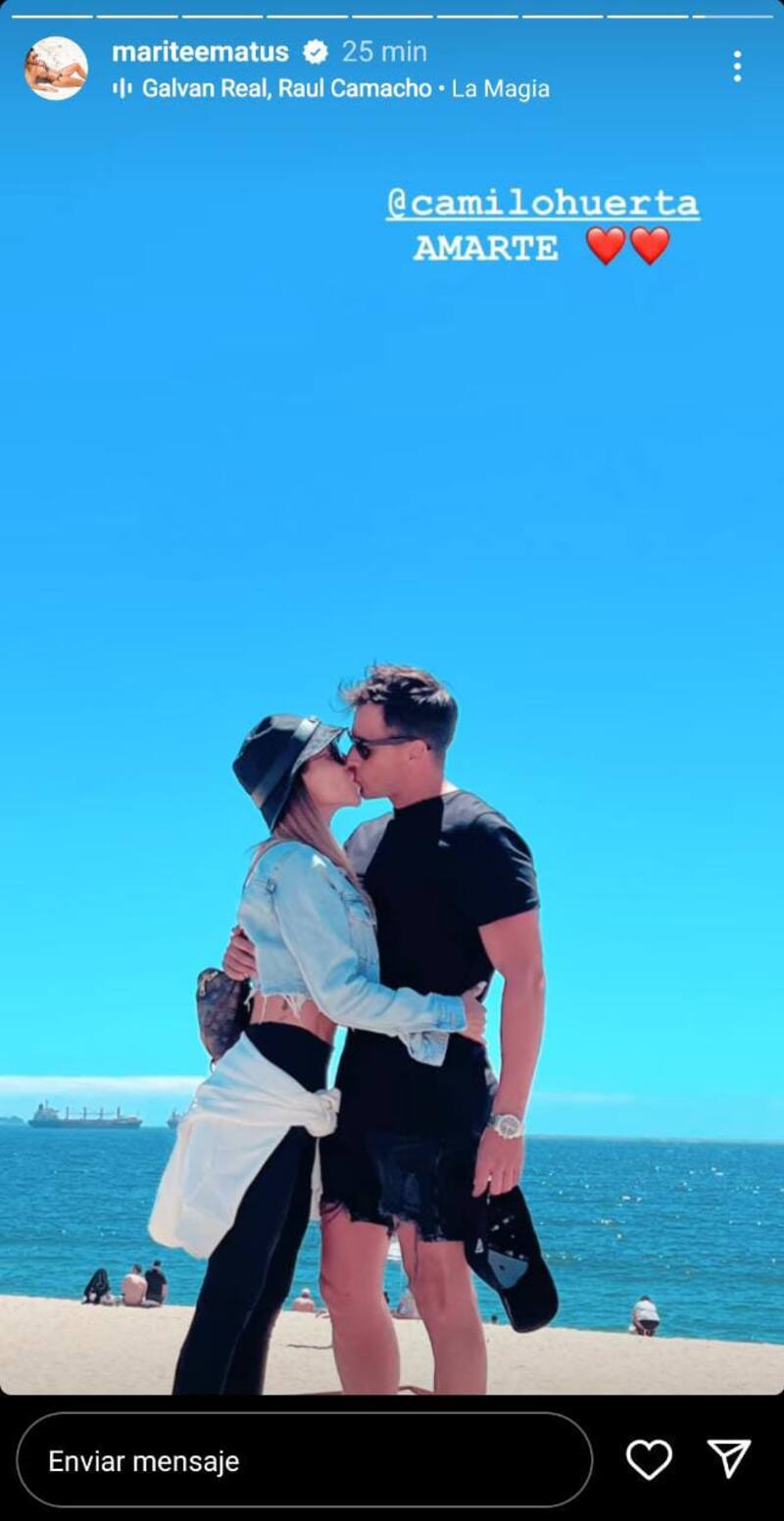 “@Camilohuerta AMARTE”, expresó junto a emojis de corazones mientras ambos posaron abrazados y dándose un beso frente al mar.