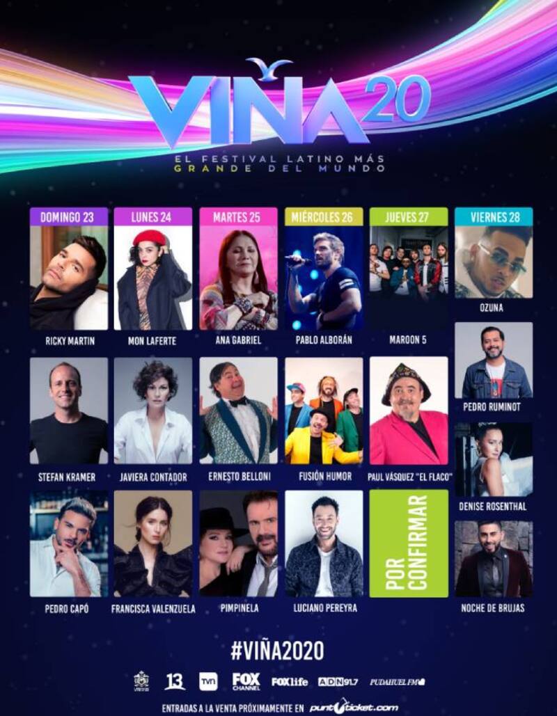 Cabe recordar que el Festival de Viña 2020 se realizará entre el domingo 23 y el viernes 28 de febrero.