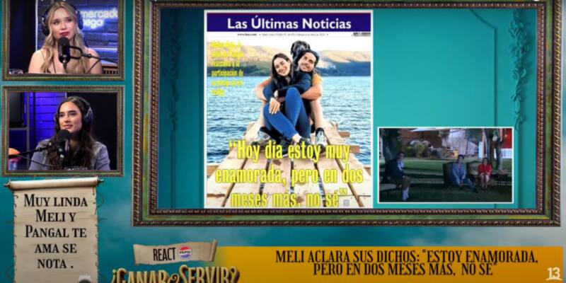 En el espacio, la modelo analizó la portada de un diario nacional, donde aparecía una foto de ambos y una frase de Melina: “Estoy enamorada, pero en dos meses más, no sé”, a lo que la joven dijo: “Me dio rabia”, asegurando que la imagen estuvo solo unas horas en internet.