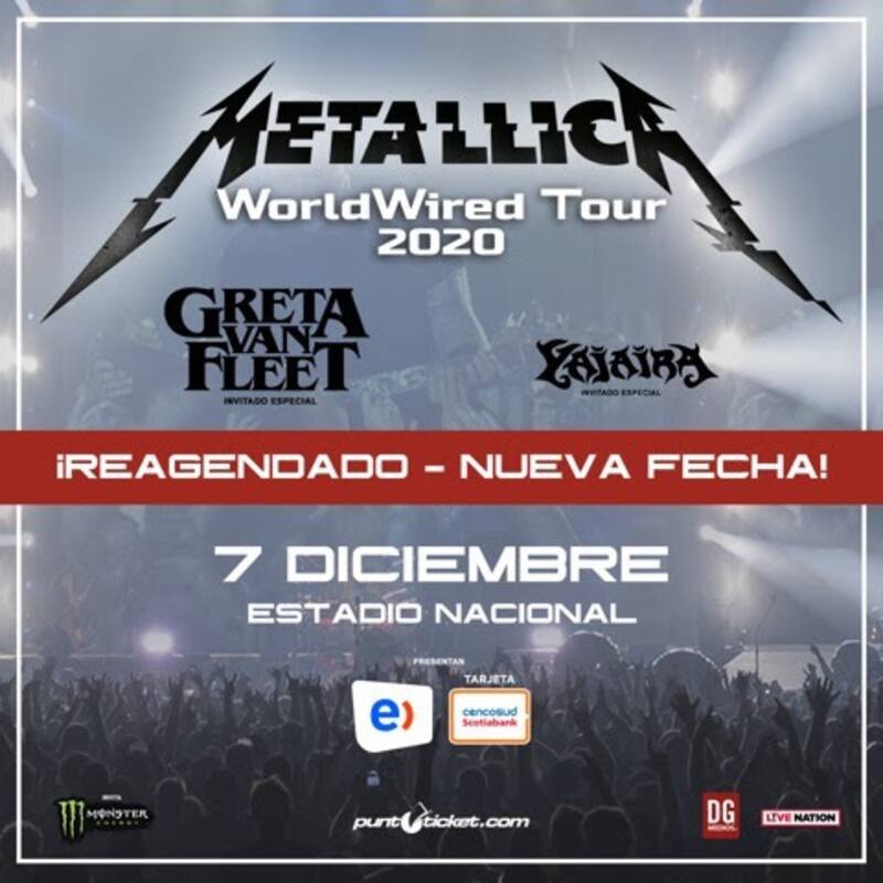 El concierto de Metallica esta reprogramado para el siete de diciembre en el Estadio Nacional, las entradas están a la venta a través del sistema PuntoTicket.